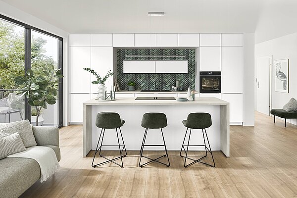 Eine moderne Küche ist heute Teil des Wohnraums, ein Treffpunkt und Rückzugsort zugleich. Hier wird gekocht und gelebt: spontan, kreativ und mitten im Geschehen.